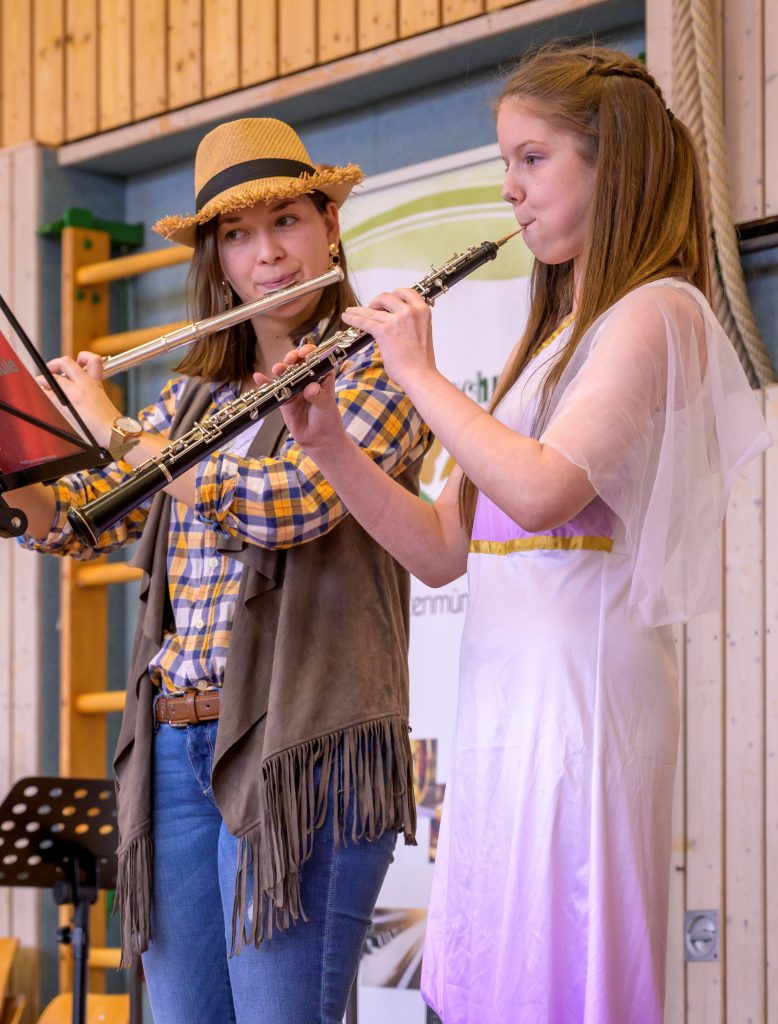 Die stellvertretende Vorsitzende der Musikschule Jasmin Angelika Berchtold begrüßte das Publikum, bevor das Jugendorchester des Musikvereins Emersacker mit dem Stück „Pegasus“ von James Curnow abhob. Es folgte ein Musikrätsel mit der Frage, welches bekannte französische Volkslied sich hinter den verschiedenen Variationen von Jan de Haan versteckte. Ein paar feine Stimmen aus dem Publikum hatten es schnell erraten und sangen leise „Sur Le Pont d´Avignon“ mit. Mit einem „Chinese in Paris“ und einem lauten „sching, schang, schong“ verabschiedete sich das zwölfköpfige Jugendorchester des Musikvereins Emersacker unter der Leitung von Nadine Schiffelholz.
